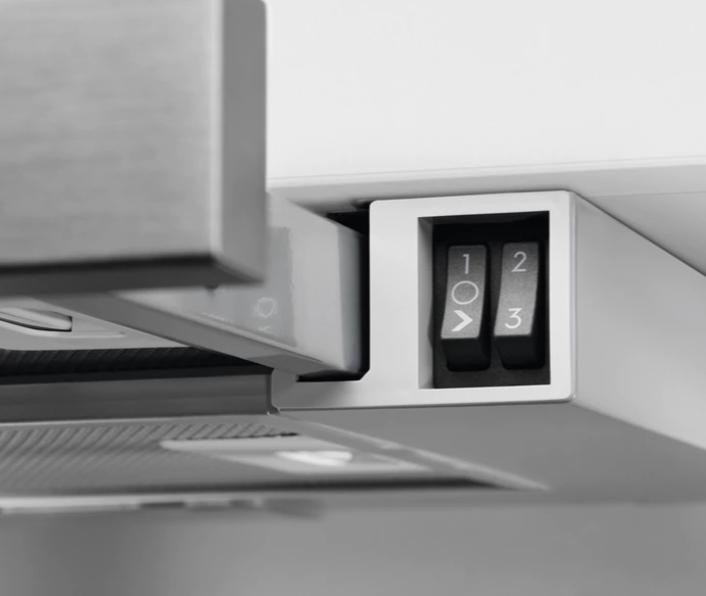 Diskrétnym zložením do jednotky nad varným panelom je náš odsávač pár neviditeľný, keď ho nepoužívate. Vytiahnutím odsávača pár sa automaticky zapne ventilátor a odsávač je pripravený na použite.