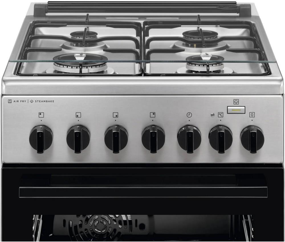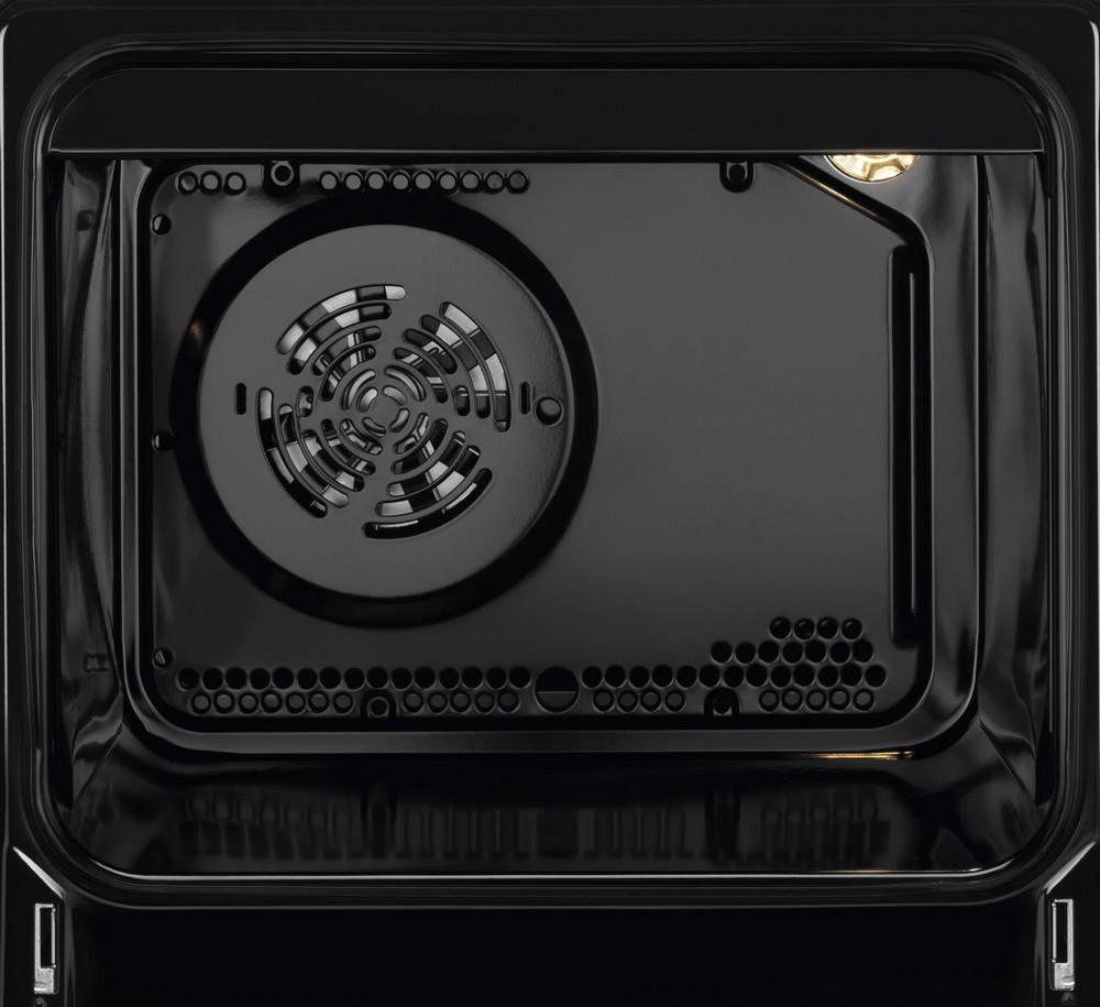 - Funkcie rúry: spodný ohrev, ventilátor, ventilátor + vrchný ohrev, ventilátor + vrchný a spodný ohrev (100°C), gril + vrchný ohrev, gril + vrchný ohrev + ventilátor, osvetlenie, kruhové teleso + odparovač + ventilátor, kruhové teleso + ventilátor, vrchný a spodný ohrev, vrchný a spodný ohrev + ventilátor