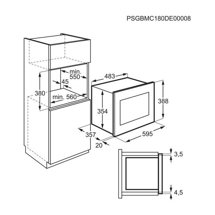 Zabudovateľná mikrovlnná rúra, Výkon mikrovĺn (W): 900, Výkon grilu (W): 1000, Počet výkonových stupňov pre mikrovlny: 8, Rozmery pre zabudovanie VxŠxH (mm): 380x560x550, Príkon (W): 1400, Čistá hmotnosť (kg): 18