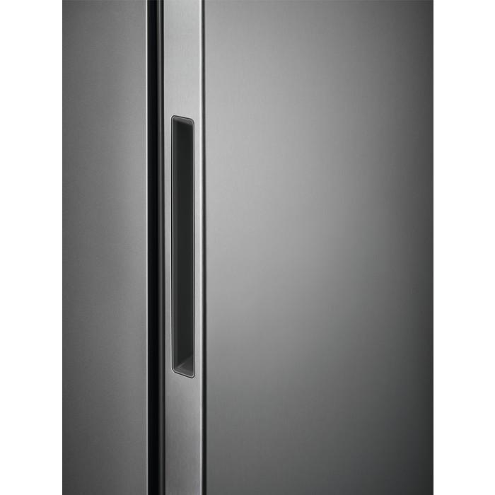 Špičkový dizajn tejto chladničky perfektne zapadne do modernej kuchyne. Vďaka jednoduchým líniám a plochému tvaru sa skvele dopĺňa s ostatnými kuchynskými spotrebičmi a pracovnými plochami. Zapustené, skryté rukoväte v dolnej časti dvierok dotvárajú elegantný vzhľad.