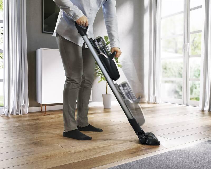 Akumulátorový tyčový vysávač, ktorý perfektne povysáva vašu domácnosť na jedno nabitie. Jeho výkon zodpovedá klasickému podlahovému vysávaču.