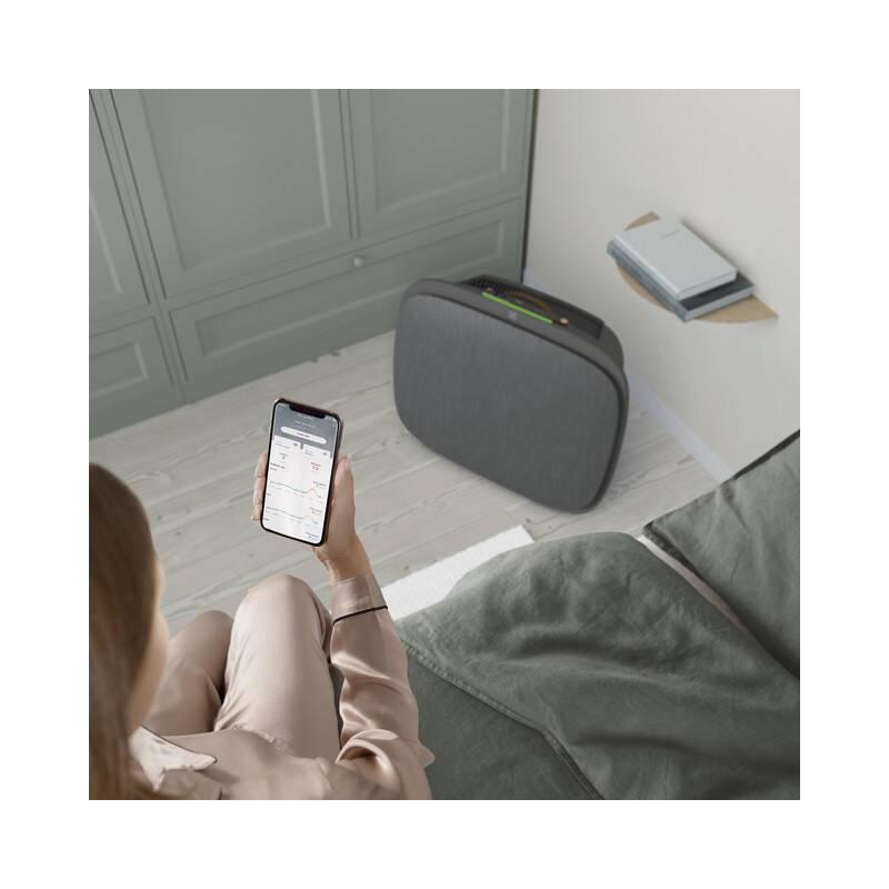 S aplikáciou Electrolux Wellbeing môžete kontrolovať a plánovať konkrétne úlohy. Vďaka senzorom na detekciu častíc (PM 1, 2.5, 10) a všetkých prchavých organických zlúčenín upravuje čistička Well A7 rýchlosť čistenia vzduchu na základe hodnôt zistených vo vašej domácnosti.