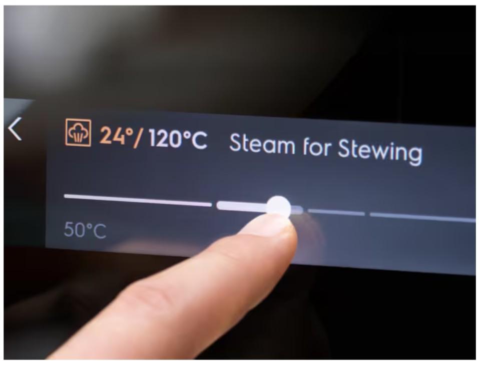 - Elektronické funkcie: 225 variety of pre-set cooking programmes 'Assist' (weight/food sensor/steam), 3 obľúbené programy, 31 jazykov, akustický signál, automatické vypnutie, nastaviteľná hlasitosť zvukového upozornenia, kontrola výsledku (Finish Assist podľa zostávajúceho 10% trvania), Child lock (in off mode), minútka pre čistenie, Clock style in standby (2 versions), čas varenia, čas varenia s odhadovaným koncom, vypúšťanie pary, demo program s kódovaním, odstraňovanie vodného kameňa, nastavenie jasu displeja, Display Full colour TFT touch 95x35mm, Drying function after cavity steaming, elektronická regulácia teploty, rýchle predohriatie s výberom možností, senzor pokrmu, automatické vypnutie senzoru pokrmu, ukazovateľ teploty senzoru pokrmu, senzor pokrmu s odhadom času, udržiavanie teploty 65°C rozšírené o pečenie pri nízkej teplote a nastavenie senzoru pokrmu, tóny tlačidiel a tóny alarmu a chýb - aktivácia / deaktivácia (okrem ZAP/VYP), jazyky / textový displej, hlavný vypínač, denná pamäť 3 dni späť, minútka, zapnutie/vypnutie osvetlenia rúry (menu + samostatné tlačidlo), ukazovateľ skutočnej teploty (°C) , indikácia zvyškového tepla (°C), využitie zvyškového tepla, preplachovanie, servisné informácie, čistenie parou (2 cykly: Steam Cleaning, Steam Cleaning Plus), vypnutie času dňa v stave vypnutia, vypúšťanie nádrže, odporučaná teplota, denný čas, nastavenie tvrdosti vody