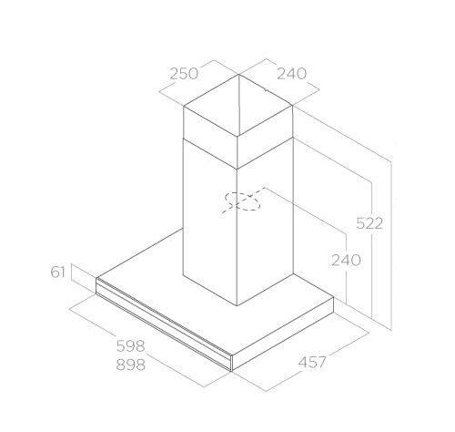 Digestor, Sací výkon minimálny / maximálny: 325 - 630 (770) m3/hod, Hlučnosť minimálna / maximálna: 55 - 69 (74) dB (A)