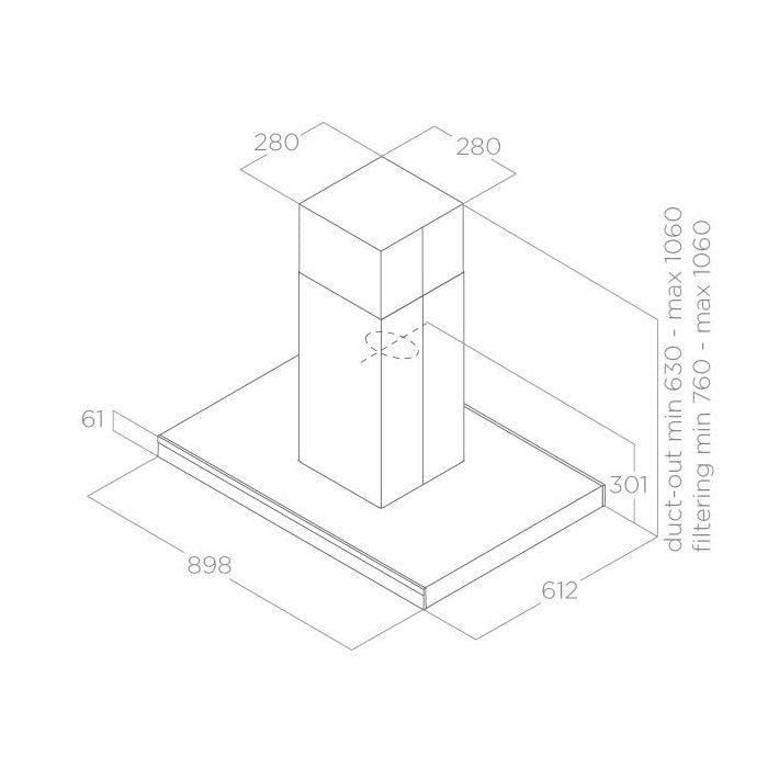 Digestor, Sací výkon minimálny / maximálny: 325 - 630 (770) m3/hod, Priemer výstupného otvoru: 150 mm, Hlučnosť minimálna / maximálna: 55 - 69 (74) dB(A)