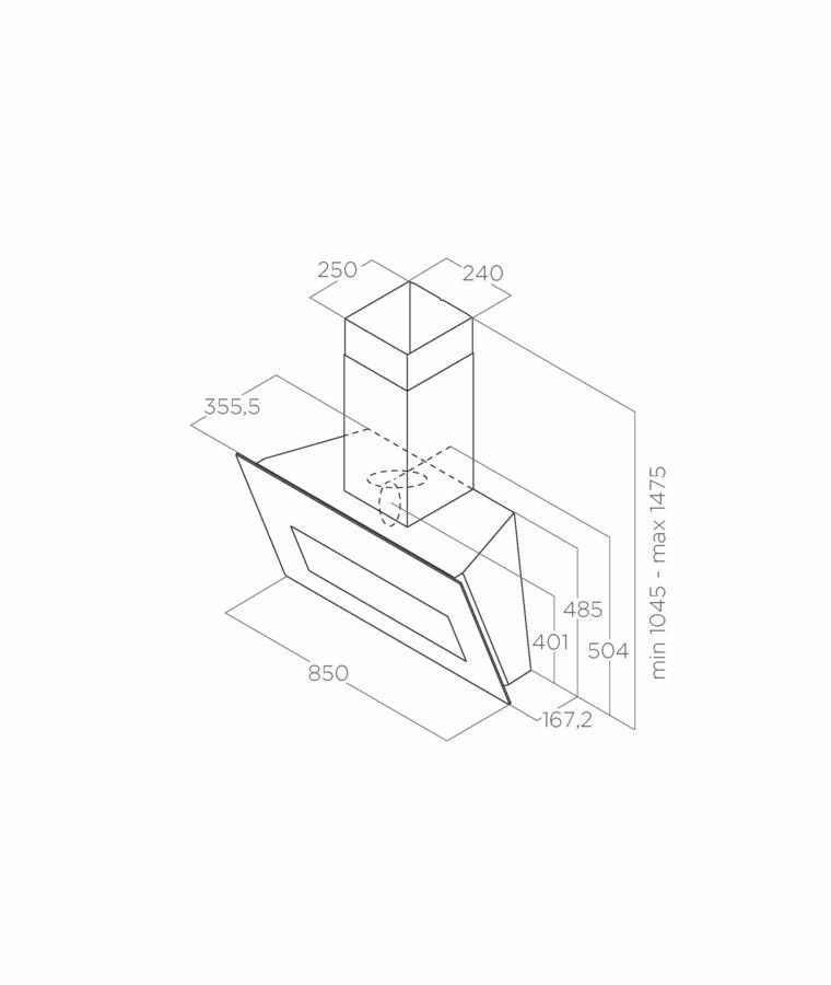 Digestor, Sací výkon maximálny: 750 m3/hod, Ovládanie: 3S + B dotykové ovládanie, Hlučnosť minimálna / maximálna: 35 - 56dB(A)