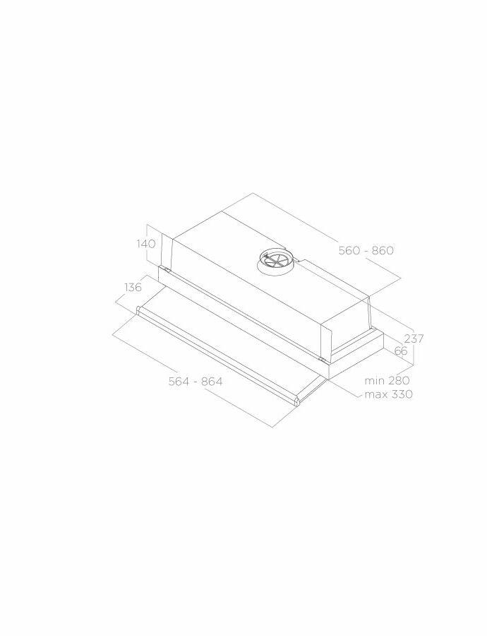 Digestor, Sací výkon minimálny / maximálny: 130 - 225 m3/hod, Šírka: do 60 cm skrinky, Hlučnosť minimálna / maximálna: 47 - 55 dB (A)