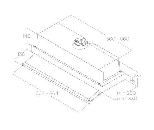 Digestor, Sací výkon minimálny / maximálny: 250 - 425 m3/hod, Šírka: do 90 cm skrinky, Hlučnosť minimálna / maximálna: 57 - 69 dB (A)