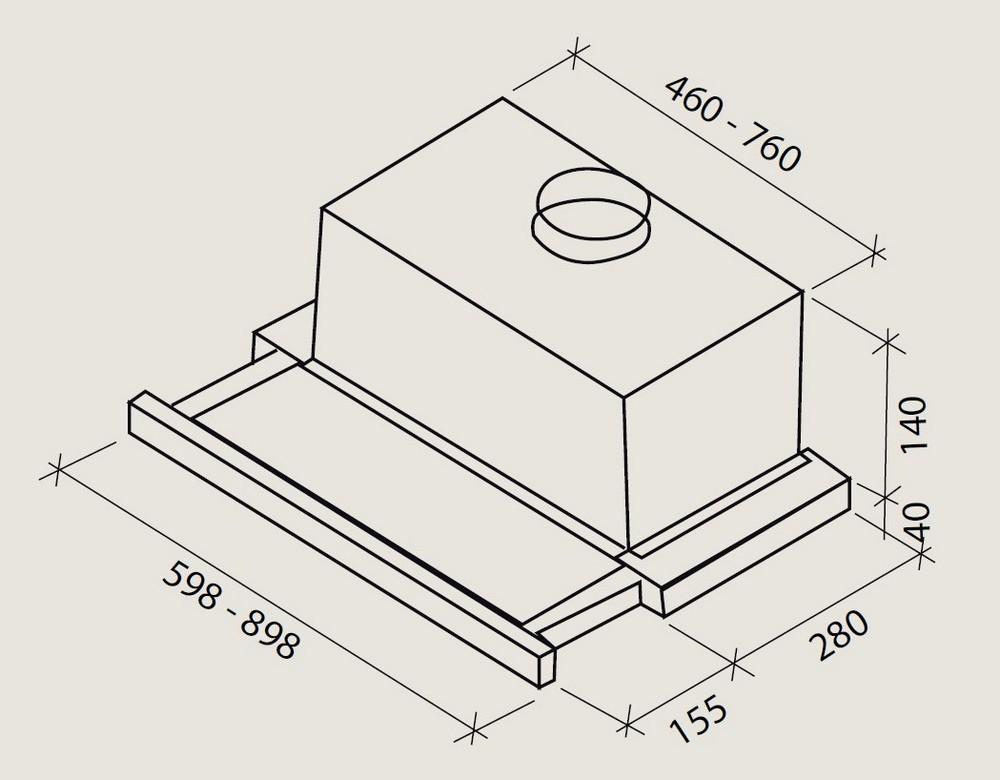 Digestor, sací výkon max.: 304 m3/hod, ovládanie: mechanické tlačítka 3S, hlučnosť: max 62 dB(A)
