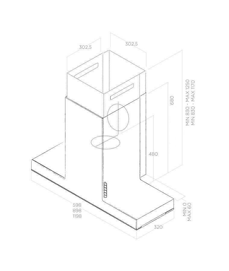 Digestor, Sací výkon minimálny / maximálny: 115 – 710 m3/hod, Hlučnosť minimálna / maximálna: 32 – 65 dB(A)