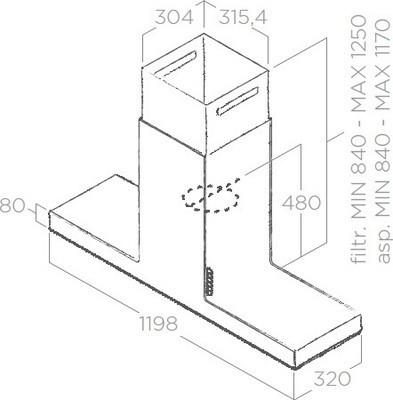 Digestor, Sací výkon min./max.: 120-720 m3/hod, Priemer výstupného otvoru: 150 mm, Hlučnosť min./max.: 35-64 dB(A)