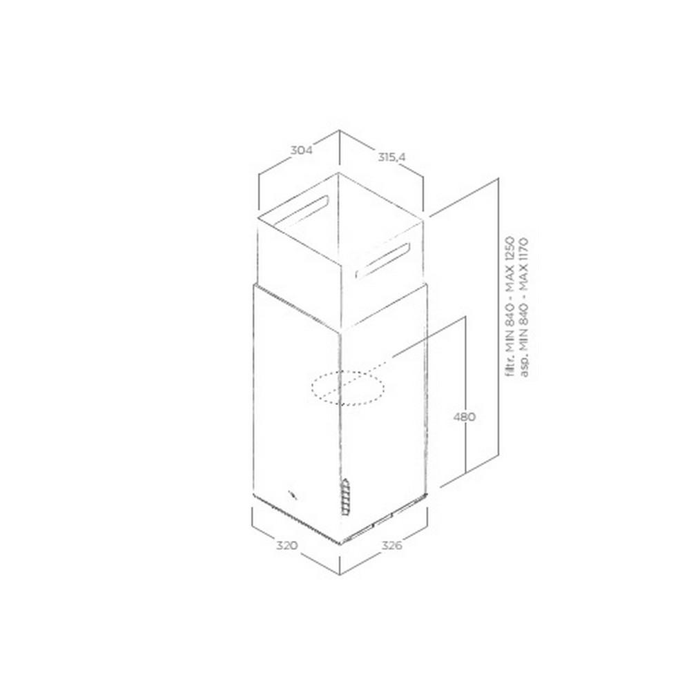Digestor, Sací výkon min./max.: 120-720 m3/hod, Priemer výstupného otvoru: 150 mm, Hlučnosť min./max.: 35-64 dB(A)
