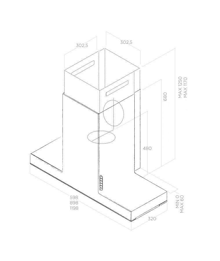 Digestor, Sací výkon minimálny / maximálny: 115 – 710 m3/hod, Hlučnosť minimálna / maximálna: 32 – 65 dB(A)