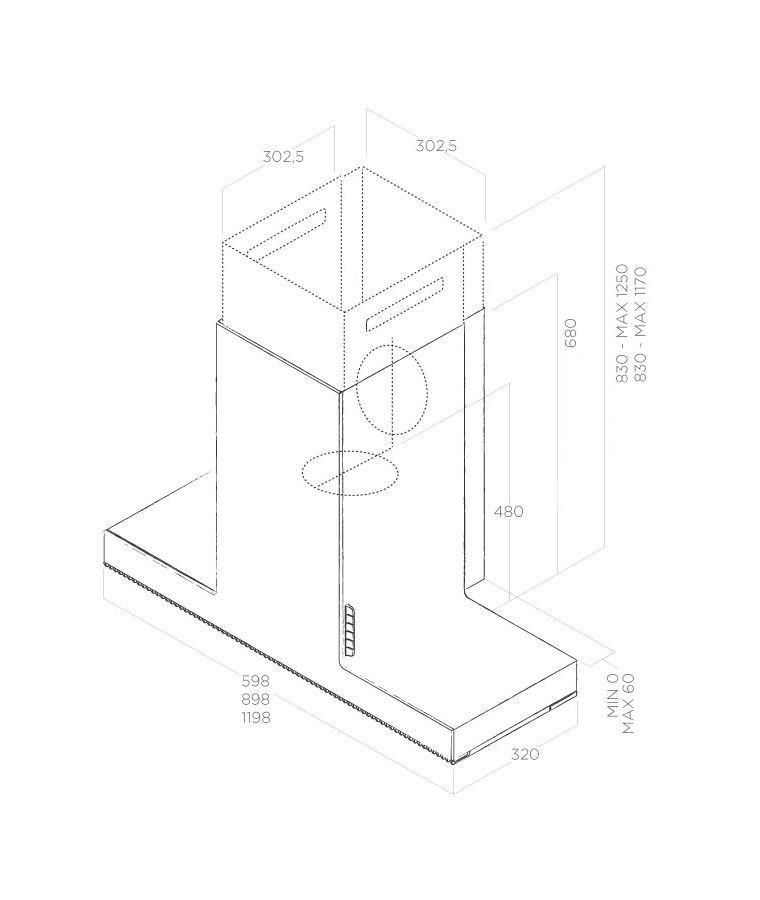 Digestor, Sací výkon minimálny / maximálny: 115 – 710 m3/hod, Hlučnosť minimálna / maximálna: 32 – 65 dB(A)