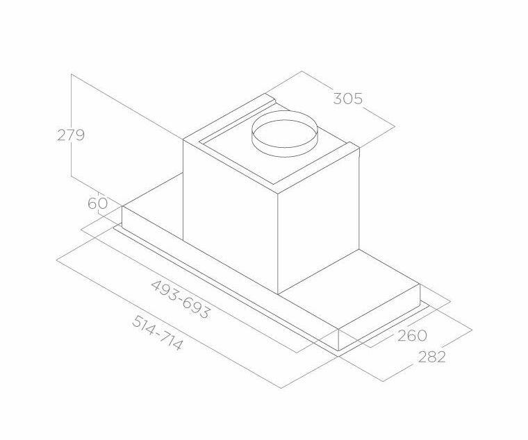 Digestor, Sací výkon maximálny: 700 m3/hod, Priemer výstupného otvoru: 150 mm, Hlučnosť minimálna/maximálna: 51 - 67 dB (A)
