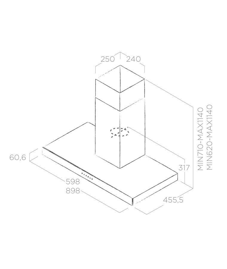 Digestor, Sací výkon minimálny / maximálny: 288 - 581 (710) m3/hod, Hlučnosť minimálna / maximálna: 51 - 69 (73) dB (A)