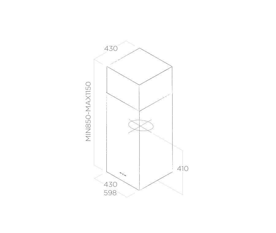 Digestor, Sací výkon minimálny/maximálny: 224 - 416 (495) m3/hod, Priemer výstupného otvoru: 150 mm, Hlučnosť minimálna/maximálna: 48 - 62 (66) dB (A)