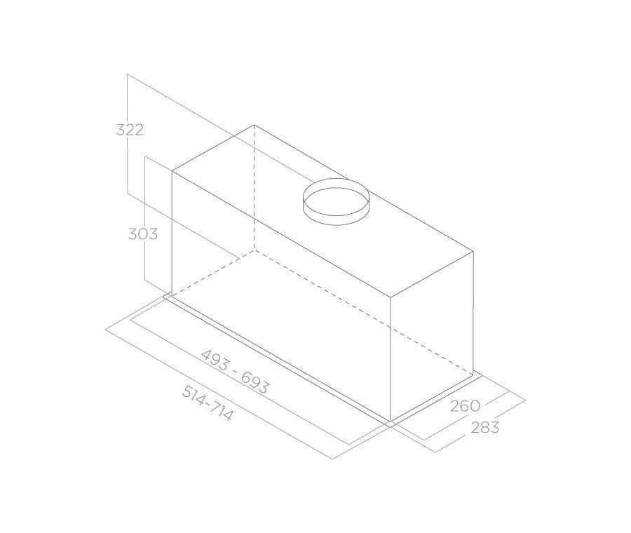Digestor, Sací výkon minimálny / maximálny: 255 - 550 (650 ) m3/hod, Ovládanie:3S+B dotykové, Hlučnosť minimálna / maximálna: 49-65 (68) db(A)