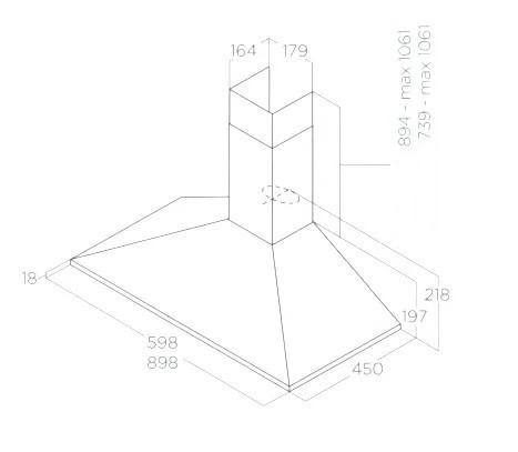 Digestor, Sací výkon minimálny / maximálny: 165 - 395 m3/hod, Hlučnosť minimálna / maximálna: 49 - 68 dB (A)
