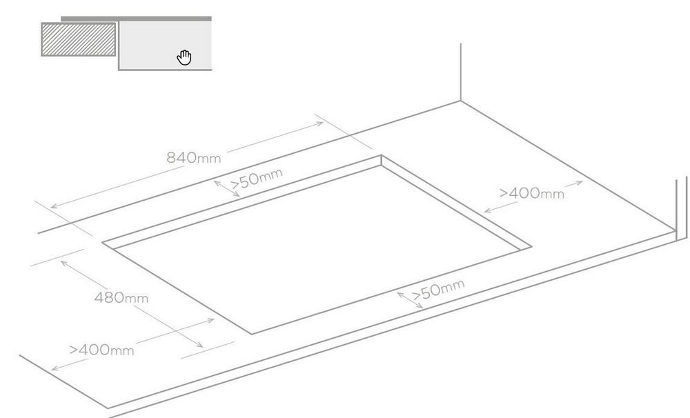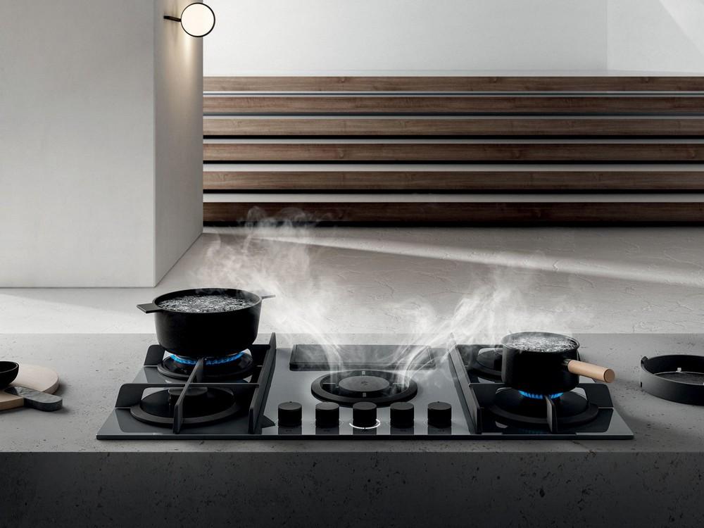 Varná doska s odsávaním, Varné zóny:1(3,5kW), 2(1,75kW), 1(3,5kW), Sací výkon: max. 610 m3/h s odťahom do exteriéru, Priemer výstupného otvoru: 150 mm