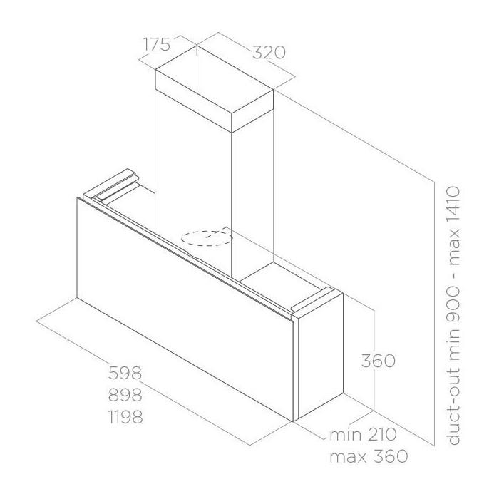 Digestor, Sací výkon maximálny: 700 m3/hod, Ovládanie : 3S+B Electronic push button (Ttlačidlové), Hlučnosť minimálna / maximálna: 40 - 58 dB(A)