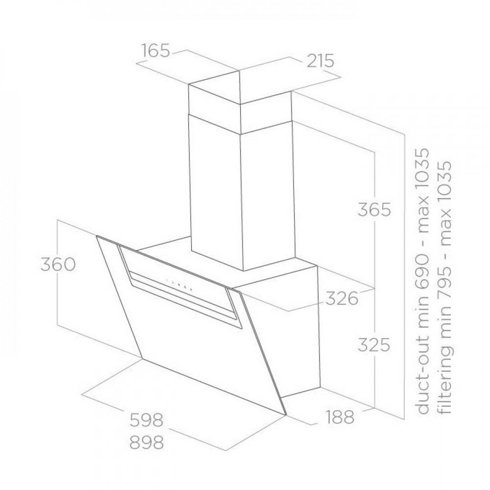 Digestor, Sací výkon maximálny: 650 m3/hod, Priemer výstupného otvoru: 150mm, Hlučnosť maximálna: 65 dB (A)