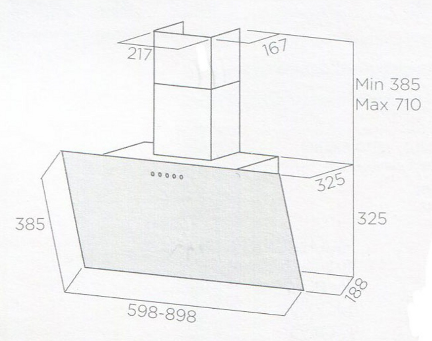 Nástenný odsávač pár, Výkon motora: 900m3 / h, Ovládanie: 2S + B dotykové, Spotreba: 272 W, Hlučnosť: 60 (67) db