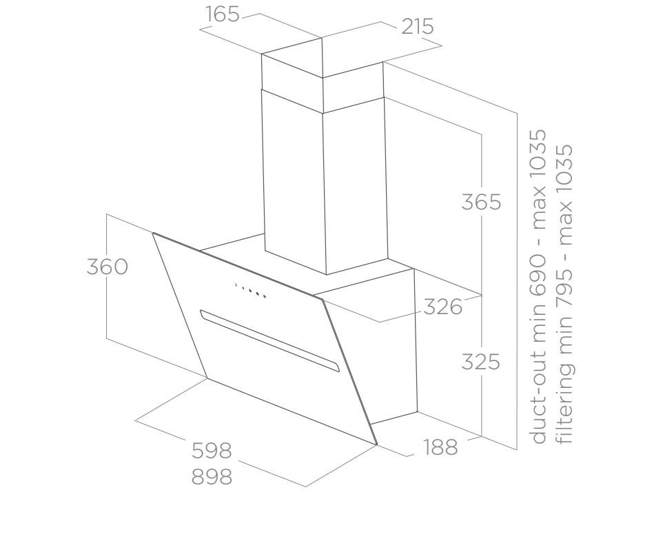 Digestor, výkon: 650 m3/hod., ovládání: 3 + dotykové, verzia: odťah a recilkulácia, rozmer: šírka 60 cm