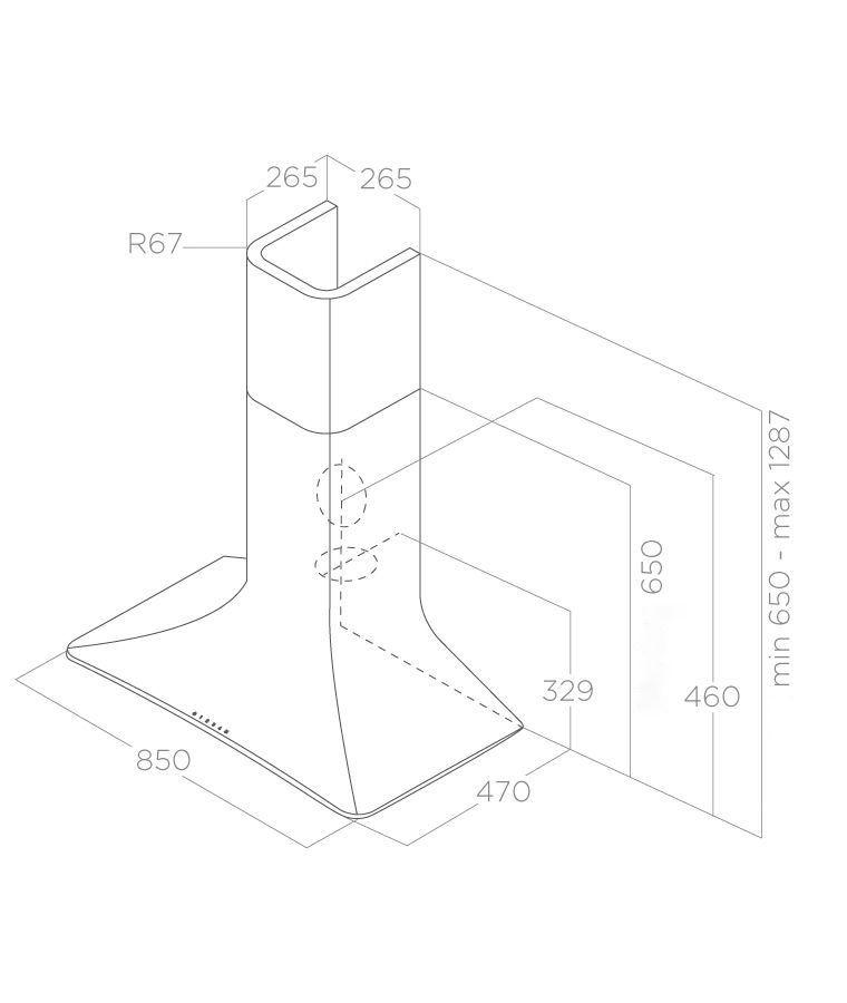 Digestor, Sací výkon minimálny / maximálny: 230 - 465 (580) m3/hod, Sací výkon minimálny / maximálny: 230 - 465 (580) m3/hod