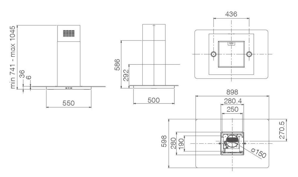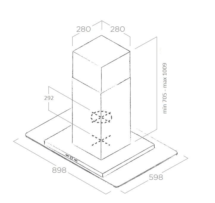 Digestor, Sací výkon minimálny / maximálny: 255 – 500 (600) m3/hod, Ovládanie:3S+B Electronic push button with display, Hlučnosť minimálna / maximálna: 48 – 64 (69) dB(A)
