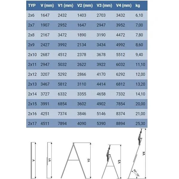 Viacúčelovo využiteľný, veľmi obľúbený dvojitý rebrík, počet schodíkov: 2×9