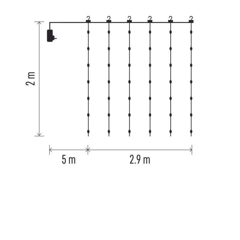 Vianočná reťaz, farba svetla: teplá biela, rozmer: 2,9 x 2 m, funkcia: 8 módov, počet LED: 400, dĺžka prívodu: 5 m