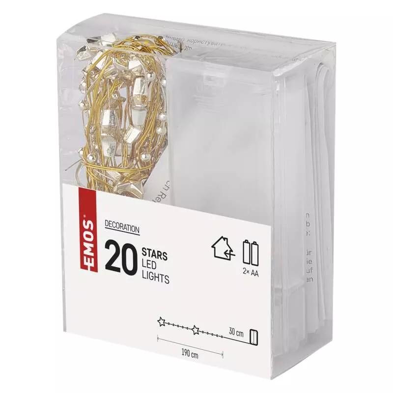 EMOS DCGW07 VIAN. GIRLANDA HVIEZD. SILVER 20LED 2AA IP20 T WW