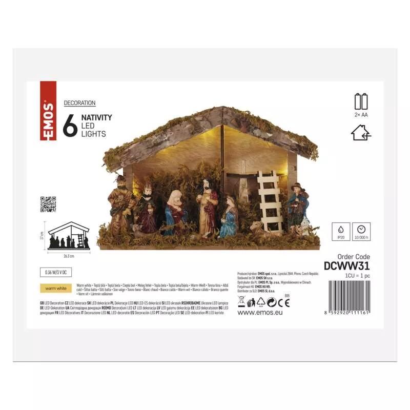 EMOS DCWW31 VIAN. BETLEHEM 6LED 26,3x17CM DREVO 2AA IP20 WW