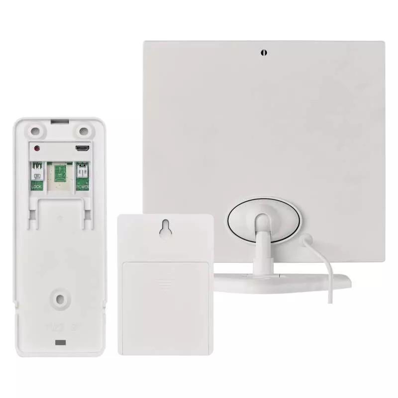 - obsah balenia: 1× jednotka dverovej kamery, 2× batérie Li-Ion 18650, 1× dažďový štít, 1× solárny panel, 1× prepojovací kábel, 1× bezdrôtový zvonček, 1× inštalačný materiál, 1× návod