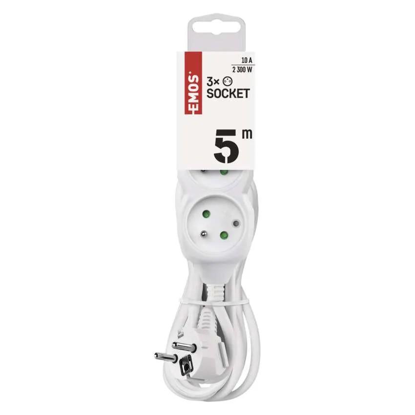 EMOS P0315 PREDLZOVACI KABEL 5 M/3 ZASUVKY/BIELY/PVC/1 MM2