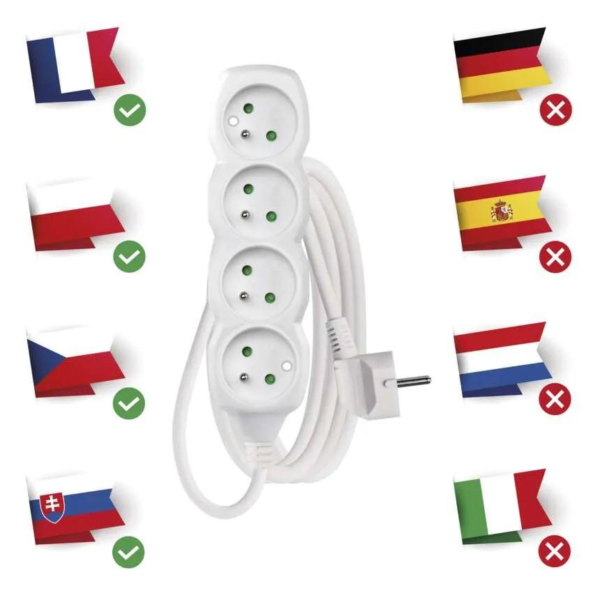 EMOS P0412 PREDLZOVACI KABEL 2 M/4 ZASUVKY/BIELY/PVC/1 MM2