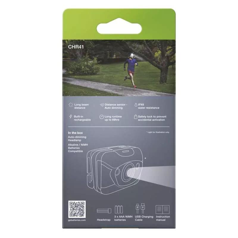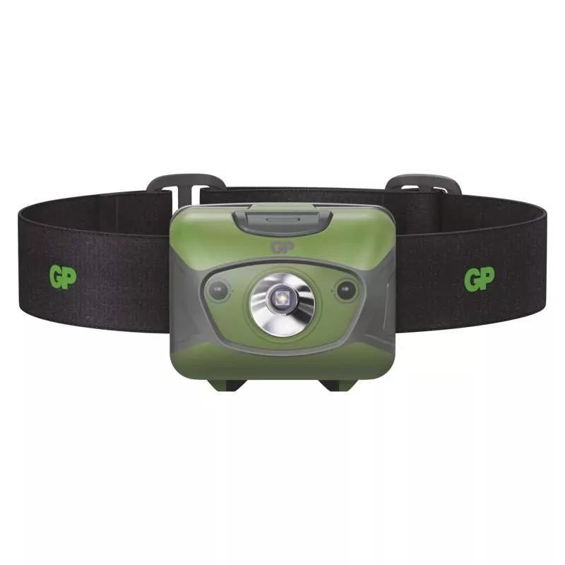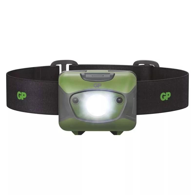 LED nabíjacia čelovka GP Discovery CHR41, 300 lm, maximálny dosvit: 157 m, počet režimov svietenia: 4, doba nabíjania: 3–4 h, farba: zeleno-šedá, reflexný pásik: áno.