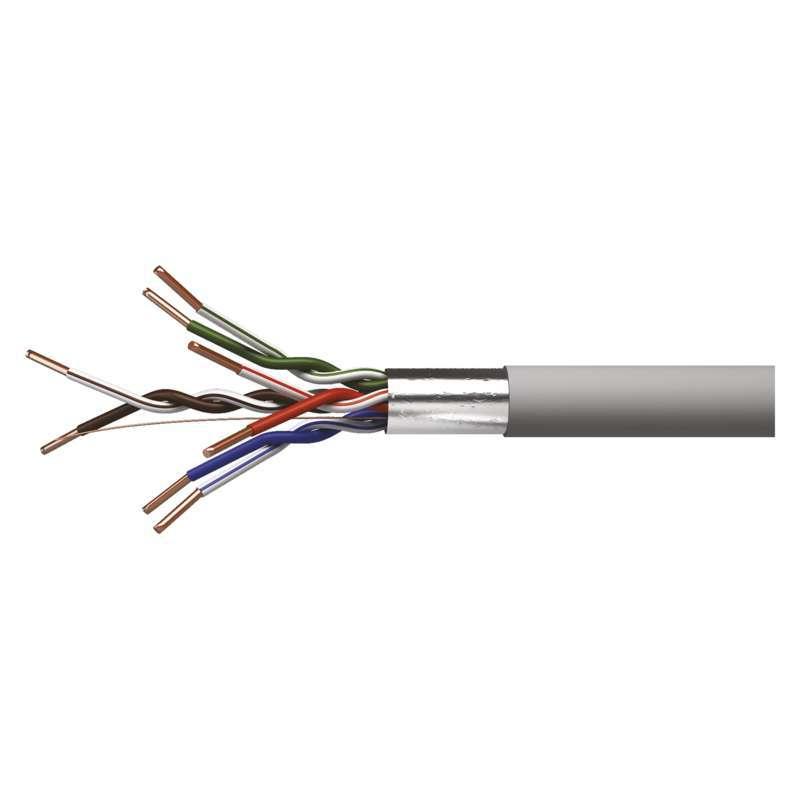 Tienený horizontálny kábel najvyššej kvality kategórie CAT5E s PVC plášťom. Jadrá vodičov vyrobené z nerecyklovanej medi. Kábel spĺňa požiadavky smernice CPR o stavebných výrobkoch.