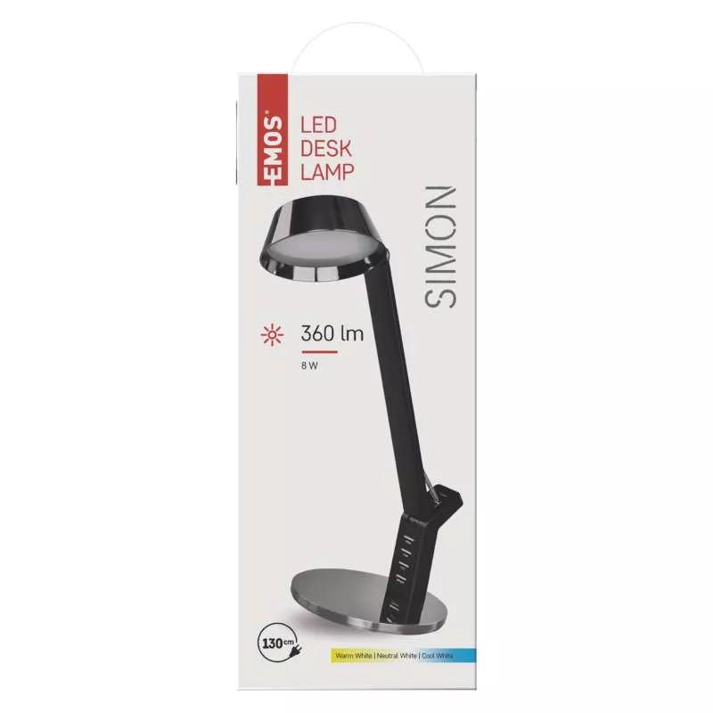 LED stolná lampa SIMON, čierna, farba svetla: teplá/neutrálna/studená biela, príkon: 8 W, napätie: 100–240 V, životnosť: 20 000 hodín