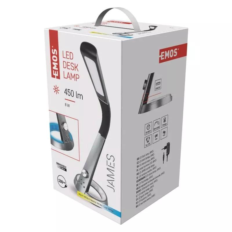 LED stolná lampa JAMES, čierna, farba svetla: teplá/neutrálna/studená biela, príkon: 8 W, napätie: 220–240 V, životnosť: 20 000 hodín.