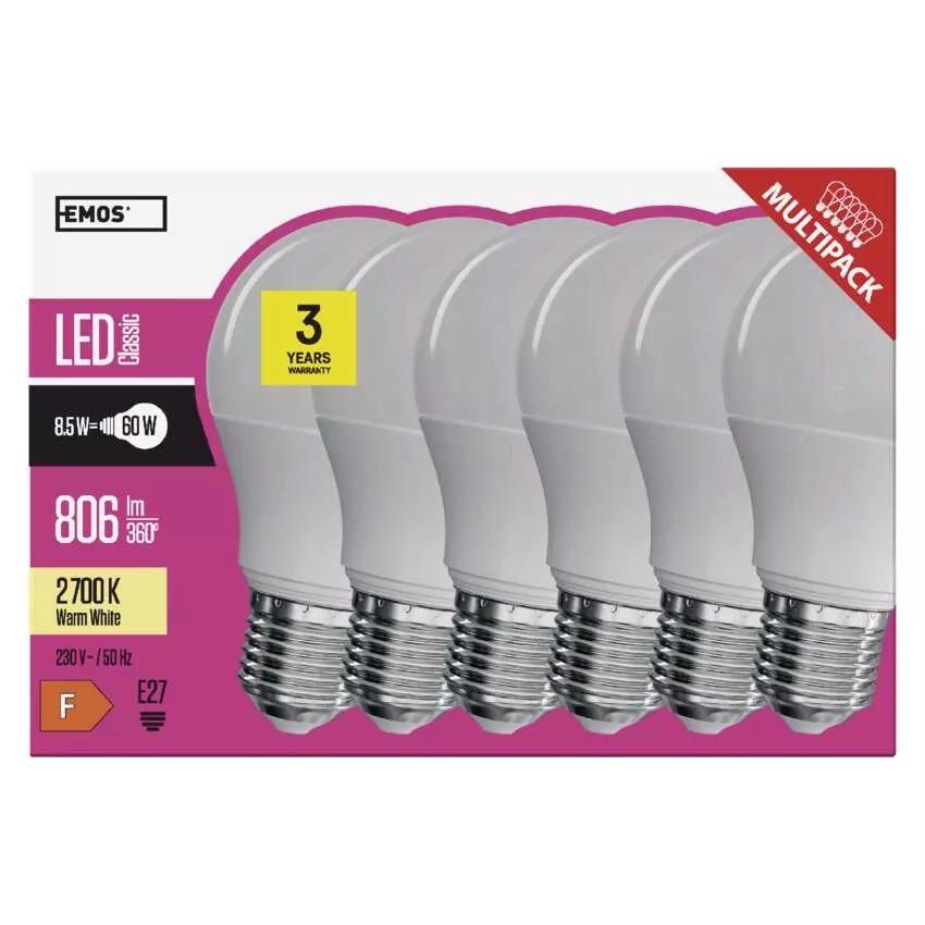 EMOS ZQ5140.6 LED ZIAROVKA CLASSIC A60/E27/8,5W (60W)/806 LM/TEPLA BIELA