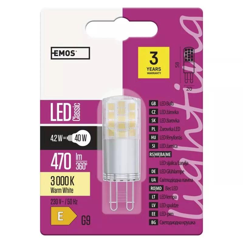 EMOS ZQ9542 LED ZIAROVKA CLASSIC JC 4,2W G9 TEPLA BIELA