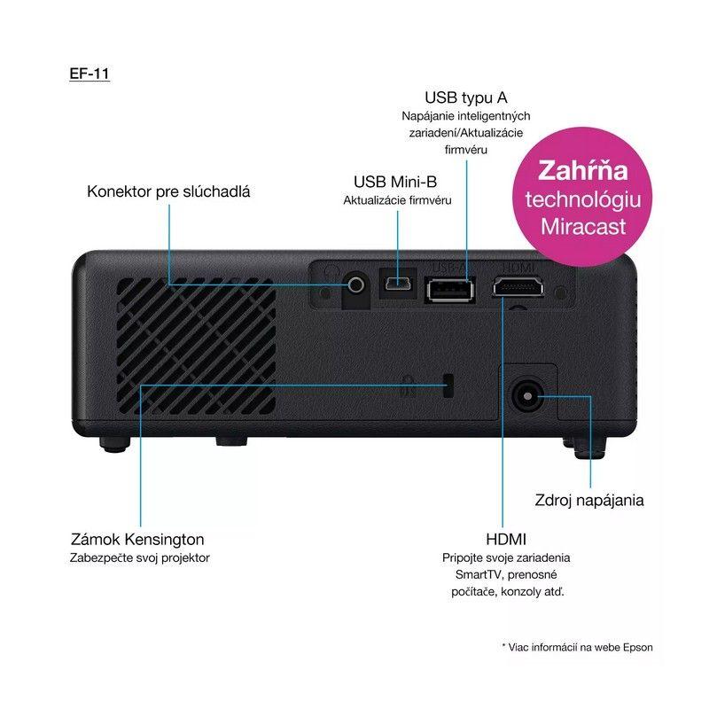 - Prípojky USB 2.0-A, USB 2.0, HDMI 1.4, Miracast, Výstup – minikonektor