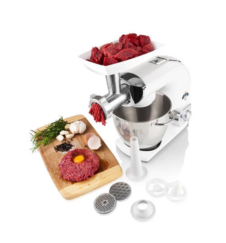 - Mlynček na mäso o priemere 62 mm (4 veľkosti mlecích doštičiek, nadstavec na výrobu údenín, nadstavec na výrobu Kebbe, tvorítko na cukrovinky, pechovadlo, násypka, uvoľňovací kľúč)