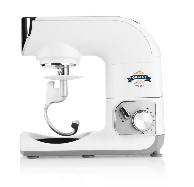 ETA 0028 90061 Gratus Max biely - kuchynský robot, Funkcie a príslušenstvo: Mixér, Hnetenie, Mäsomlynček, Krájanie, Strúhanie, Plnenie údenín, Strúhanie, Tvorítko na cukroví, Šľahanie, Miešanie