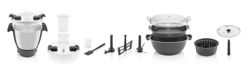 Ovládanie je veľmi jednoduché a intuitívne. Pomocou dotykového displeja si nastavíte všetko, čo potrebujete. Z rozsiahlej databázy si môžete vybrať konkrétny recept alebo môžete skúsiť experimentovať a nechať celú prípravu vo vlastnej réžii. Prispôsobiť si môžete rýchlosť, teplotu či dĺžku celého varenia. S týmto multifunkčným pomocníkom pripravíte kompletné menu pre celú rodinu, bez námahy a hory špinavého riadu.