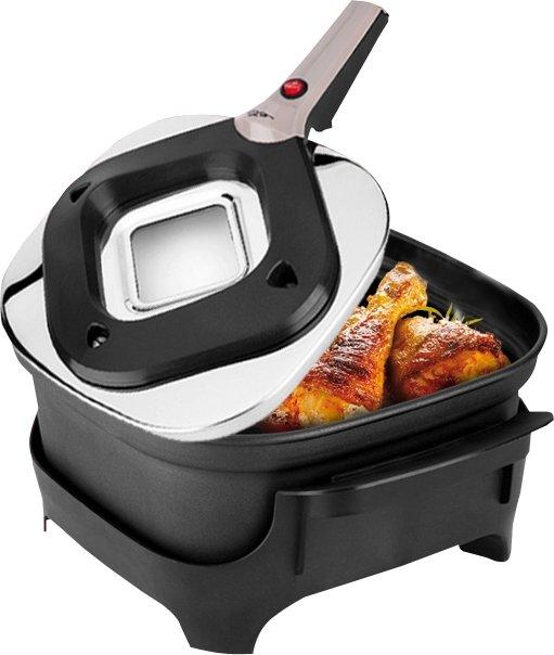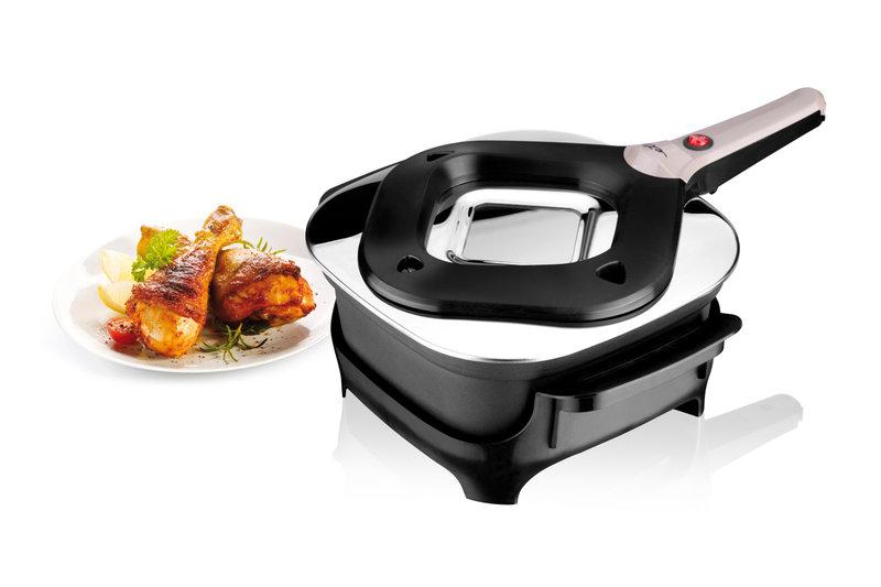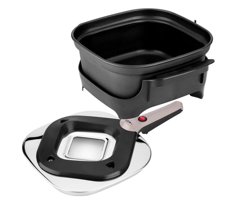Viacúčelová elektrická nádoba, Veko s nerezovou obrubou a špeciálnymi ventilačnými otvormi, Ochranný tepelný kryt veka, Ľahko vyberateľná nádoba, Dĺžka prívodného kábla 1,5 m