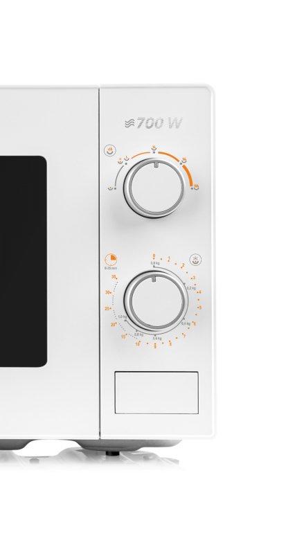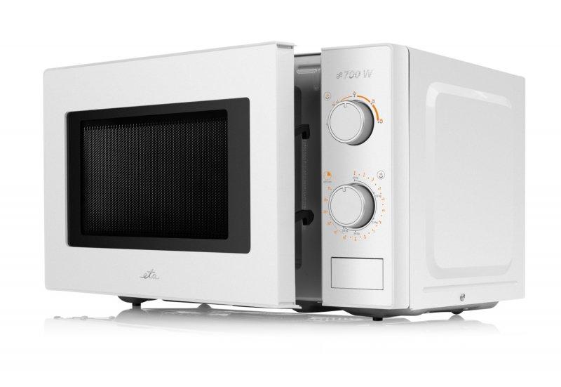 ETA 0209 90000 biela - mikrovlnná rúra, Typ: voľne stojace, Vnútorný objem: 20 l, Mikrovlnný výkon: 700 W, Priemer otočného taniera: 25.5 cm, Ovládanie: mechanické-gombíkové