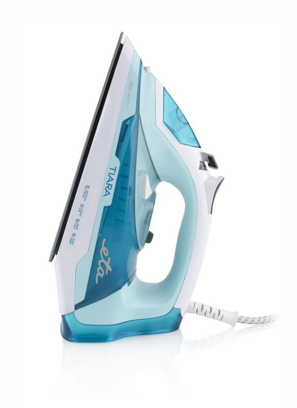 Žehlička Tiara II ETA 0269 90000 je vybavená keramickou žehliacou plochou, ktorá vytvára jedinečné vlastnosti, ako sú rýchla vodivosť tepla, optimálne rozloženie teploty na žehliacej ploche, veľmi dobrá kĺzavosť, nepriľnavosť a odolnosť proti poškriabaniu.
